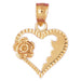 Flower in Heart Charm Pendant 14k Gold (1.6 Grams)